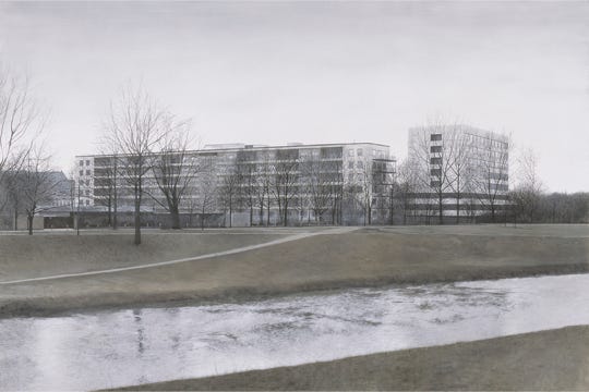 003 • 1994 • Häuser, Fluß • 145x218cm • Acryl/Nessel