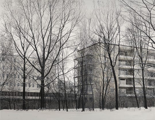 002 • 1994 • Gebäude, Schnee • 105x135cm • Acryl/Nessel