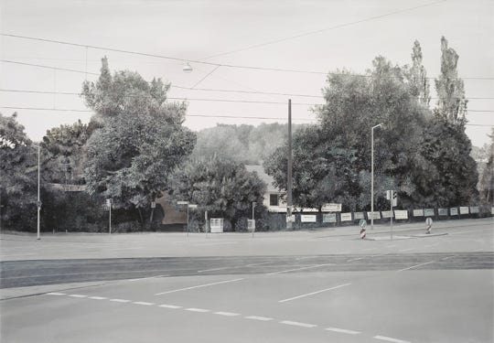 005 • 1995 • Kreuzung vor Grünfläche • 105,5x150cm • Acryl/Nessel