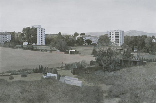 086 • 2011,2012 • Scheunen, Sportplatz • 55x80cm • Acryl/Nessel